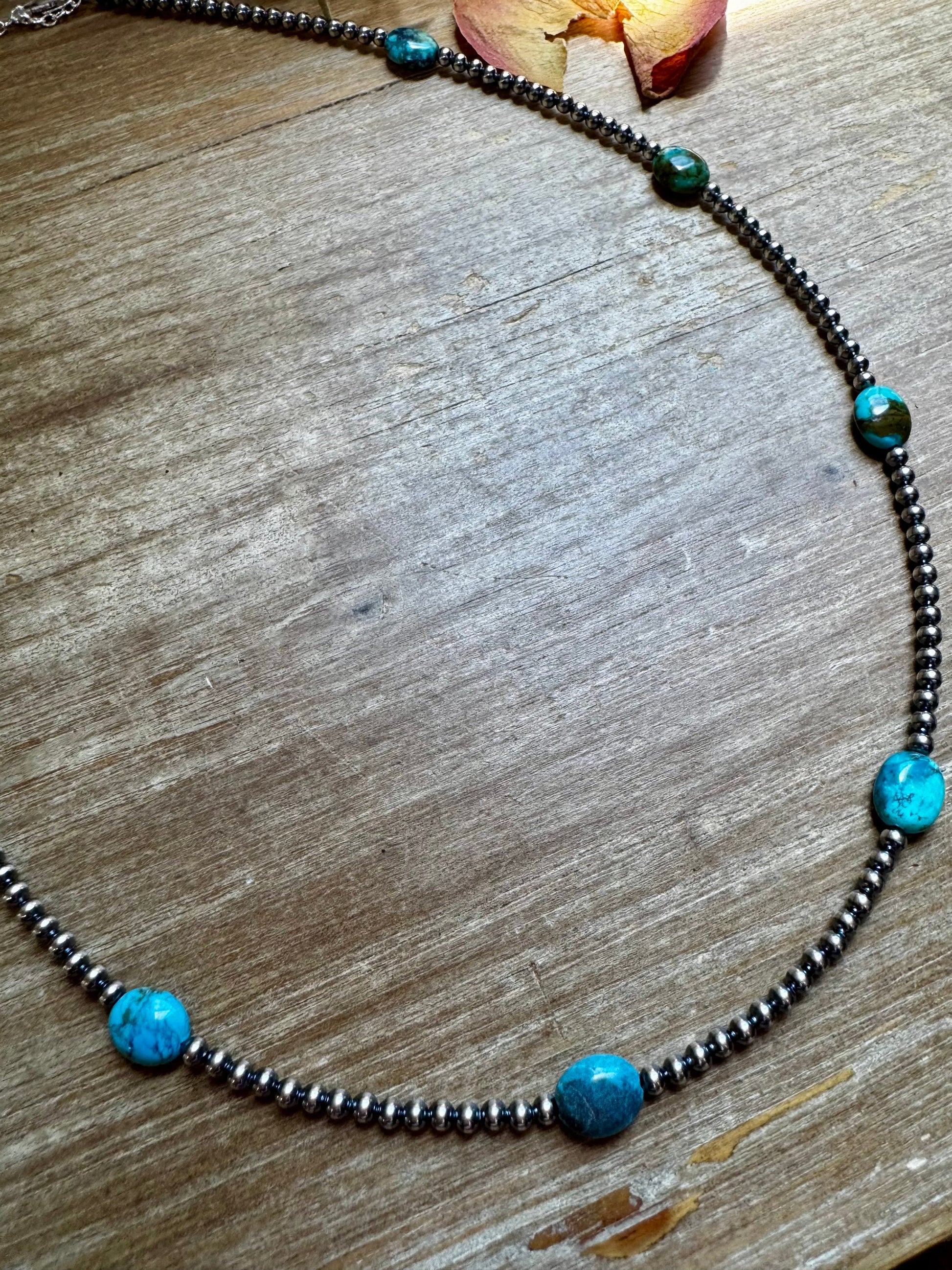 Each necklace is unique in color due to natural turquoise variation