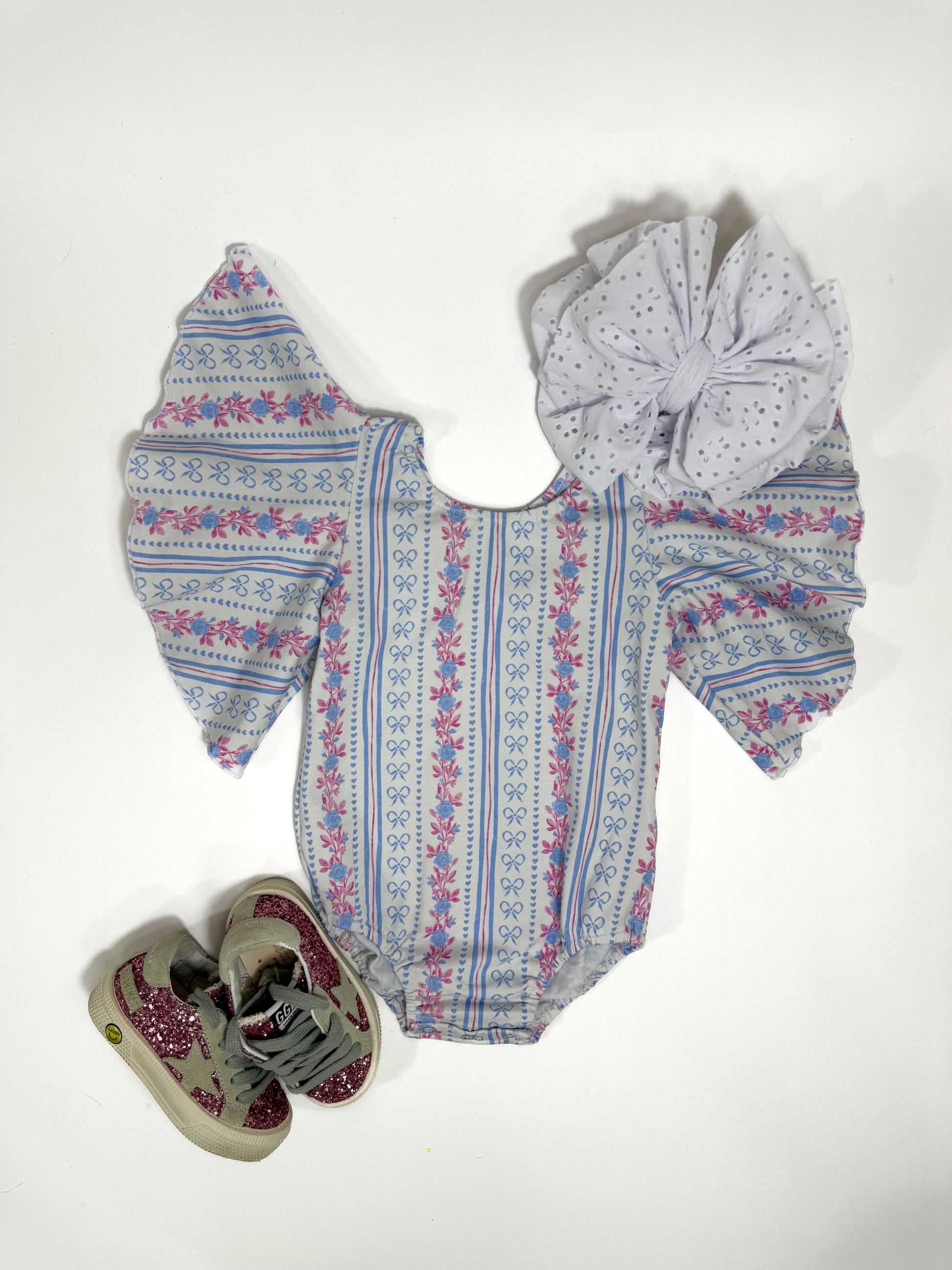 Blue Floral Bell Sleeve Leo/Top (FINAL SALE)