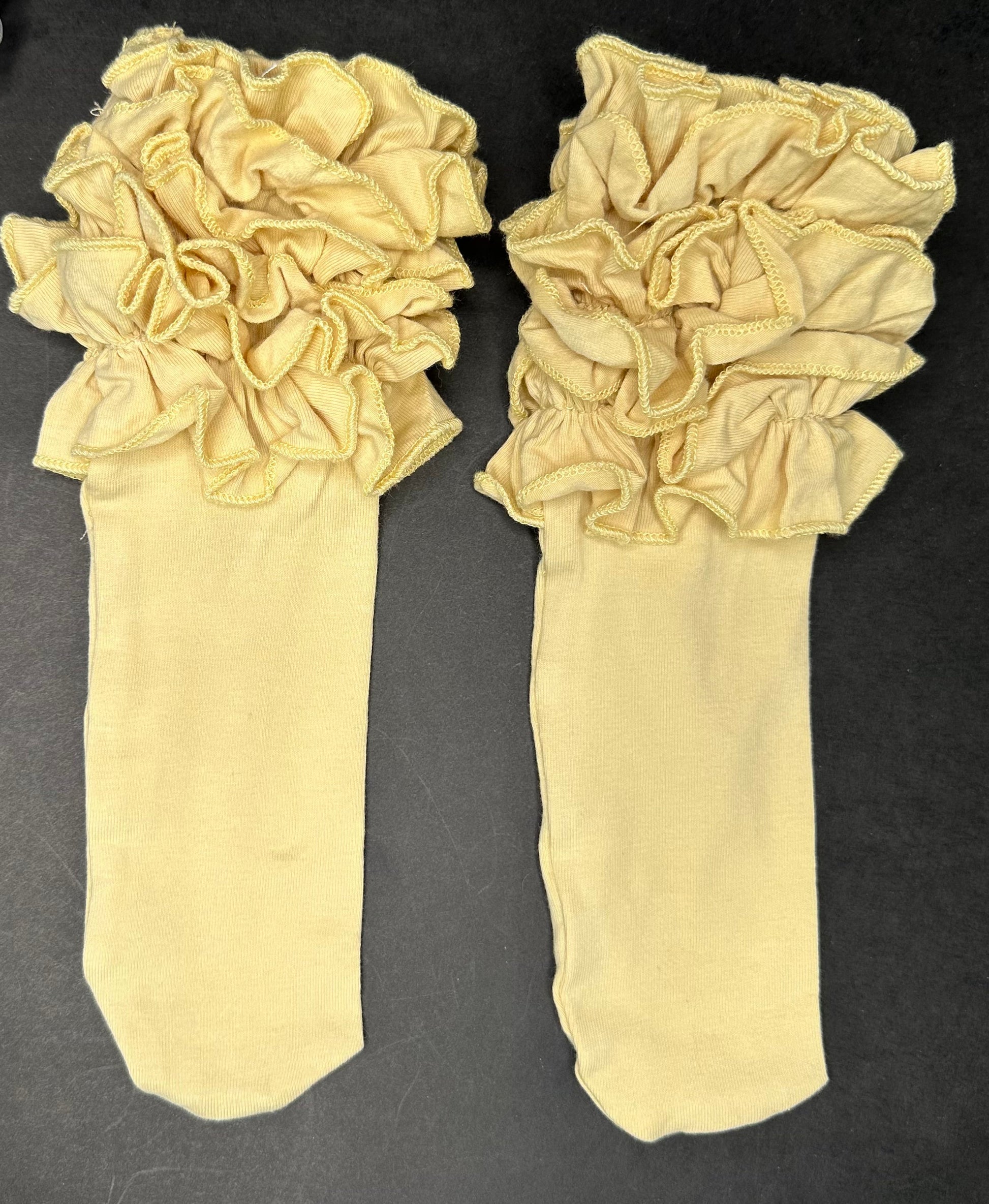 Sizes are approximate. Circumference is measured at the base of the ruffle. Length is the length from tip of toe to top of ruffle.