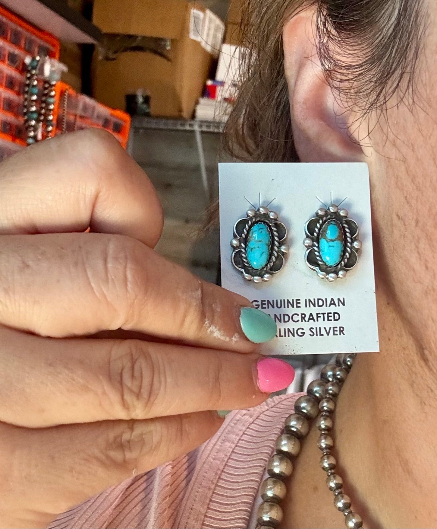 Each pair unique due to natural turquoise variation